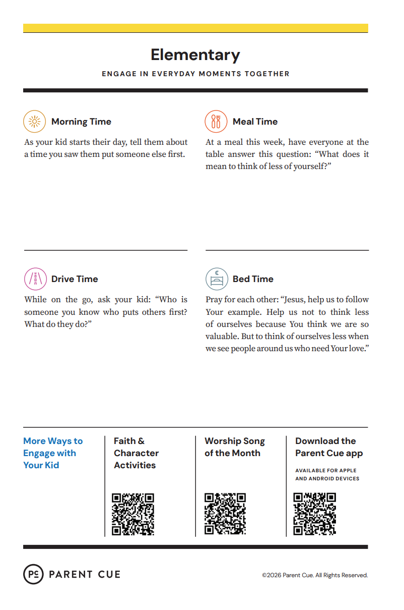 In elementary, each month we focus on a concept or virtue that relates to our relationship with God and others! The activities and object lessons each week will help kids in practical way to carry out the monthly concept or virtue in their daily lives. Our goal is to encourage kids to have the kind of relationship with God that results in showing His character to those around them!