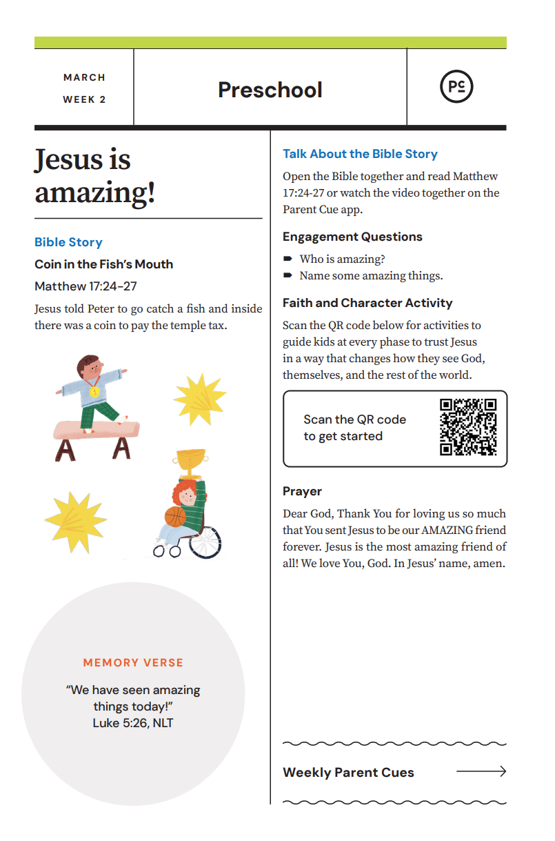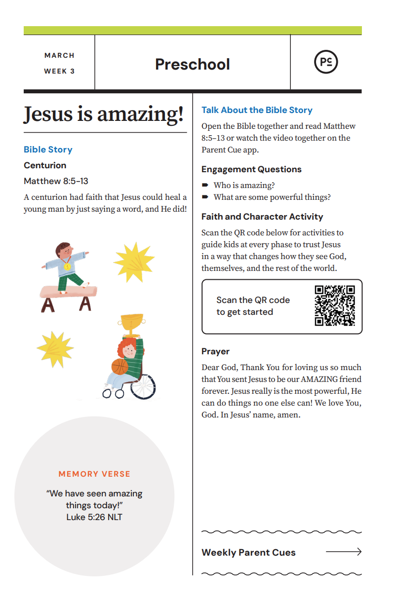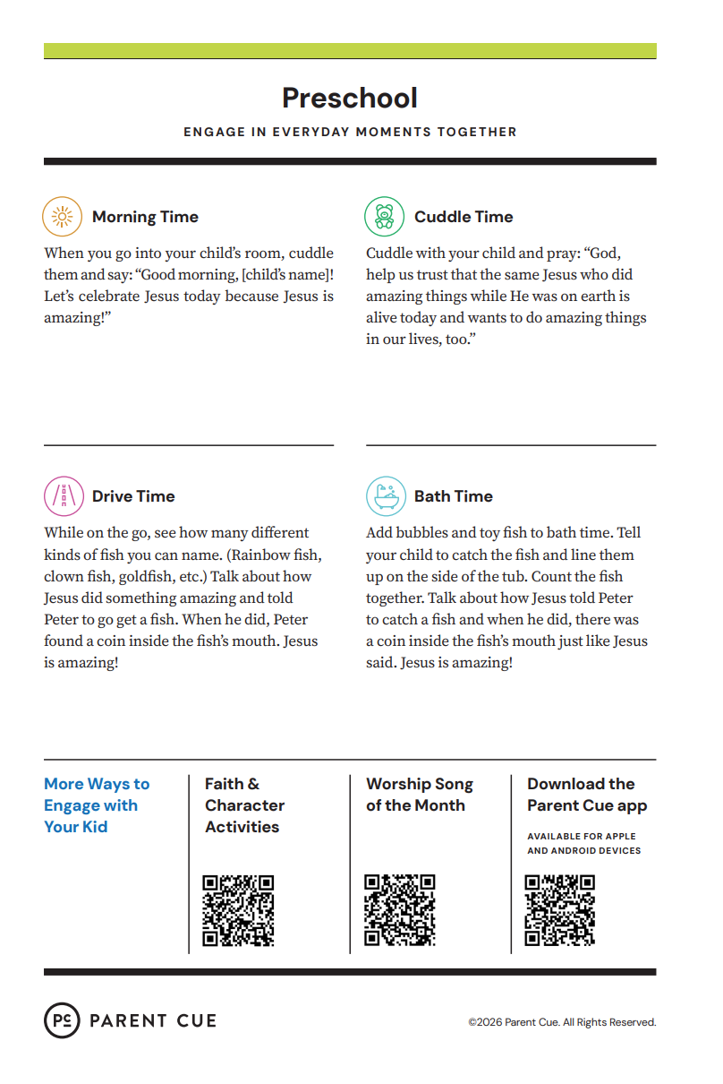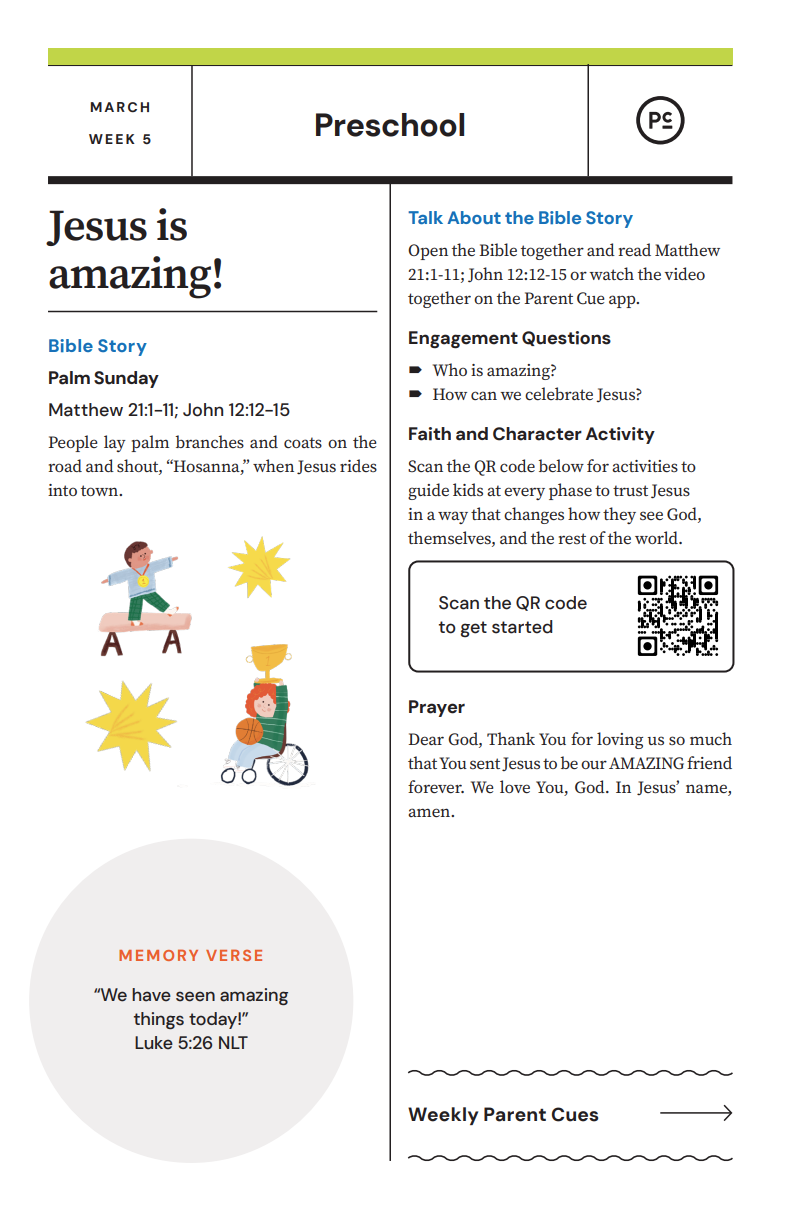 After you have completed the Check-In process & taken your child to his or her room, wave a quick good-bye & head into the adult worship service! As you know, it is common for little ones to cry when a parent leaves, and if this happens our volunteers will immediately engage your child in a toy or activity and ensure your child that you will return soon. If your child cries for an extended period of time or needs you for some reason, we will put your parent/guardian code on the top right hand corner of the auditorium screen!